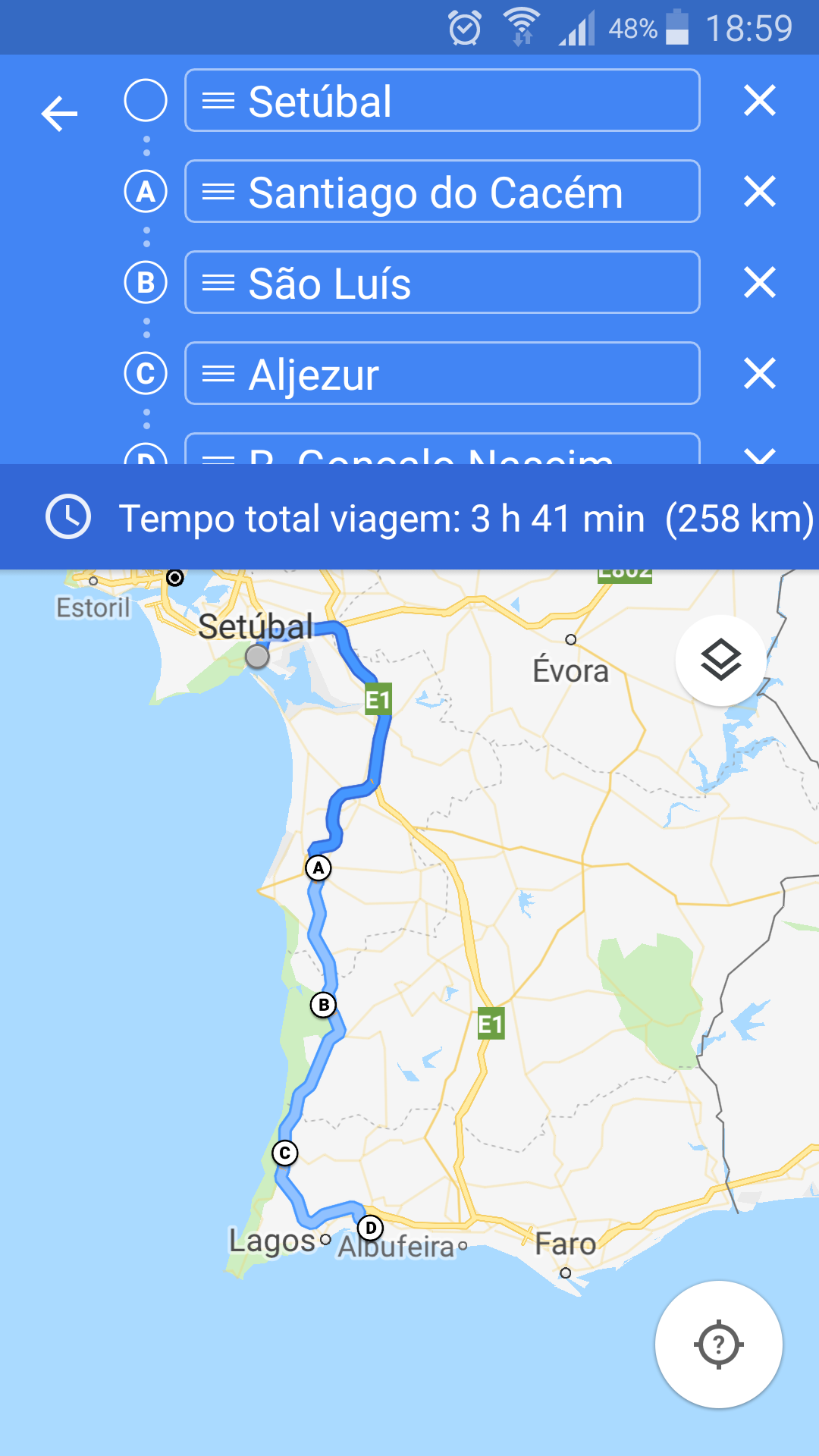 Além de se ter de andar mais depressa, são 10 quilómetros a mais pela A2:BrunoAlves Escreveu: ↑05 jul 2018, 12:16Imagino que seja mais fácil por ser a uma velocidade mais baixa (por sair da AE) e eventualmente fugir a um pouco da serra? A diferença de kms é pouco relevante (6-8kms pelo que estive a ver, nada de especial)![]()