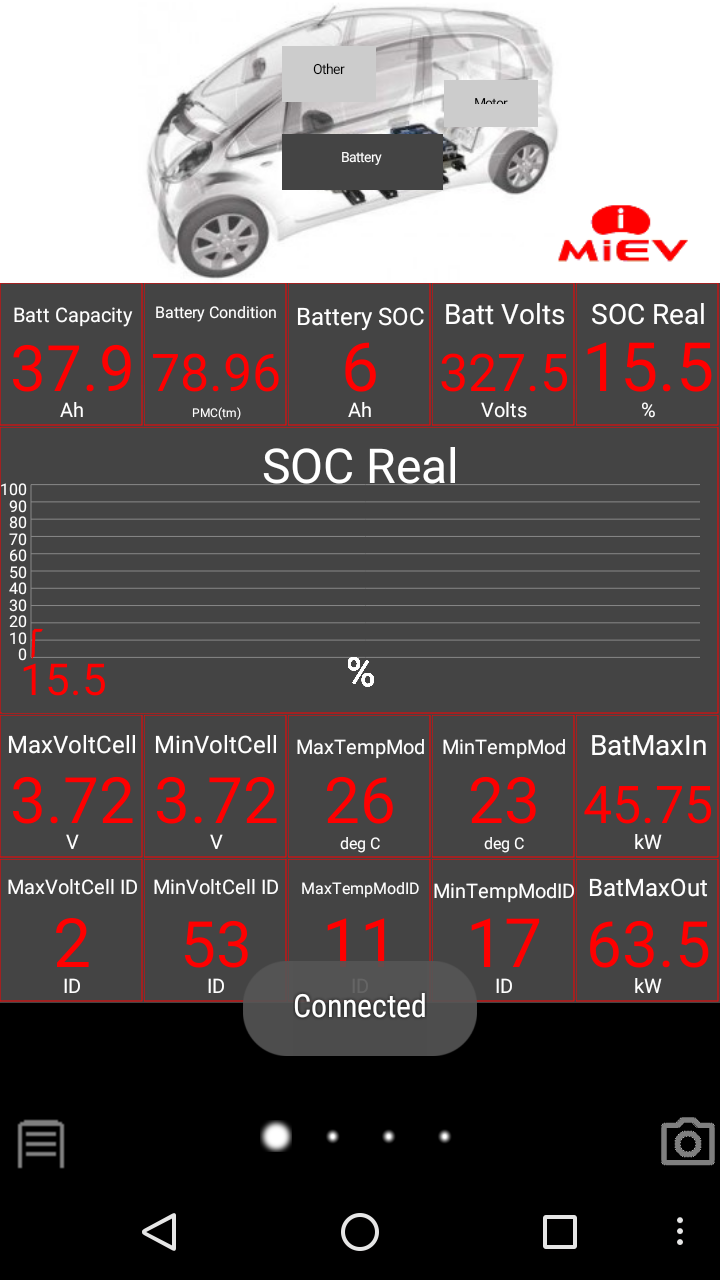 Por outro lado acho a tensão das células ainda muito altas 3,72v e também não sei com quantos volts o motor para talvez 320 volts