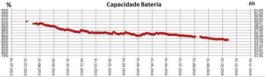 O pack, contando com o efeito P3227, já perdeu 6,44% desde a primeira medição no início de Agosto de 2013, ou seja, menos 4,22Ah.