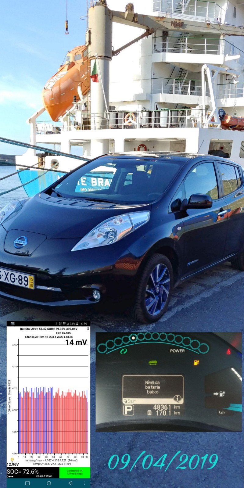 Entretanto já vou com 21 mil kms percorridos desde que recebi a máquina. O conta kms conta já quase 70 mil kms e o SOH está nos 84%.