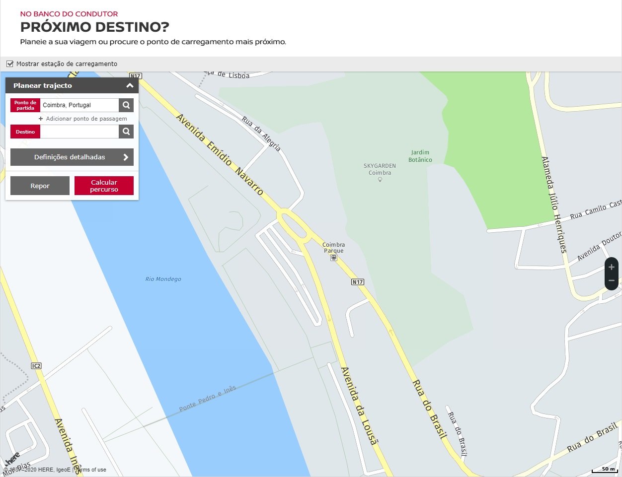 O plano que tentei planear, tinha de carregar em coimbra. O planeador detectou que precisava de carregar, mas apenas aparecia como opção o PCR da NIssan de coimbra, não aparecia o PCR da Prio.