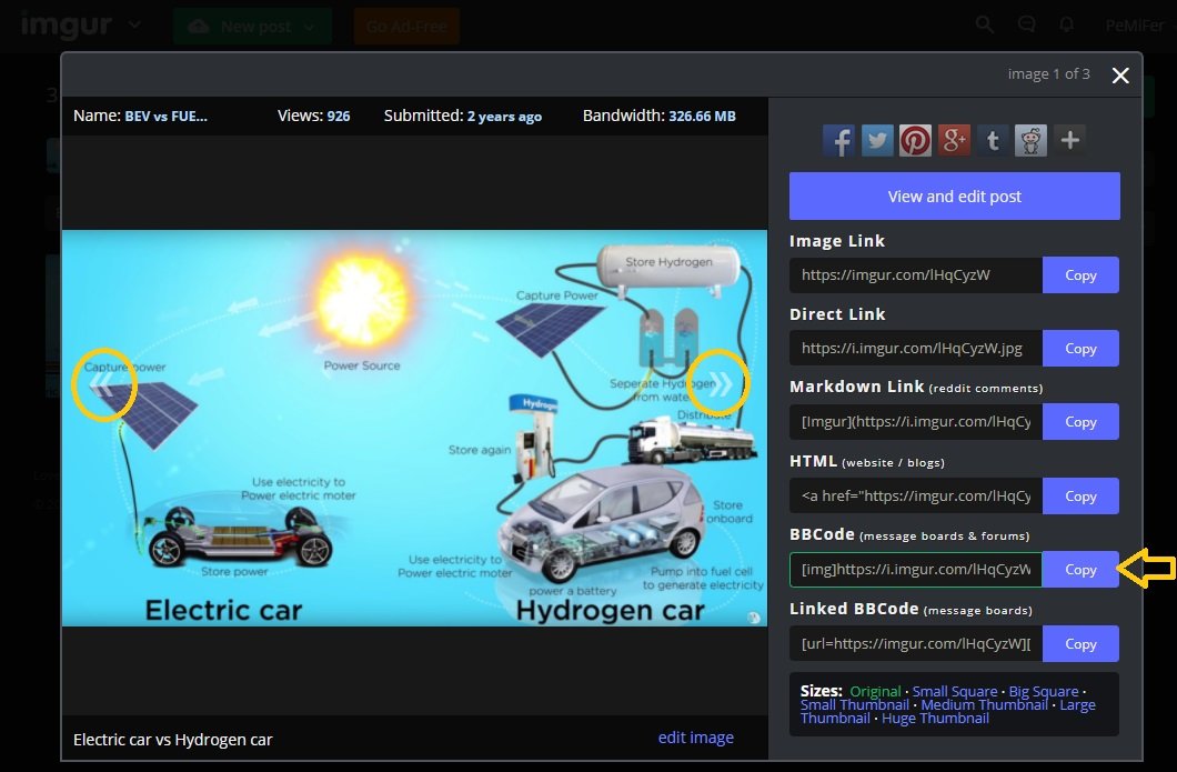 - clica no botão "Copy" onde diz "BBCode (message boards & forums)"
