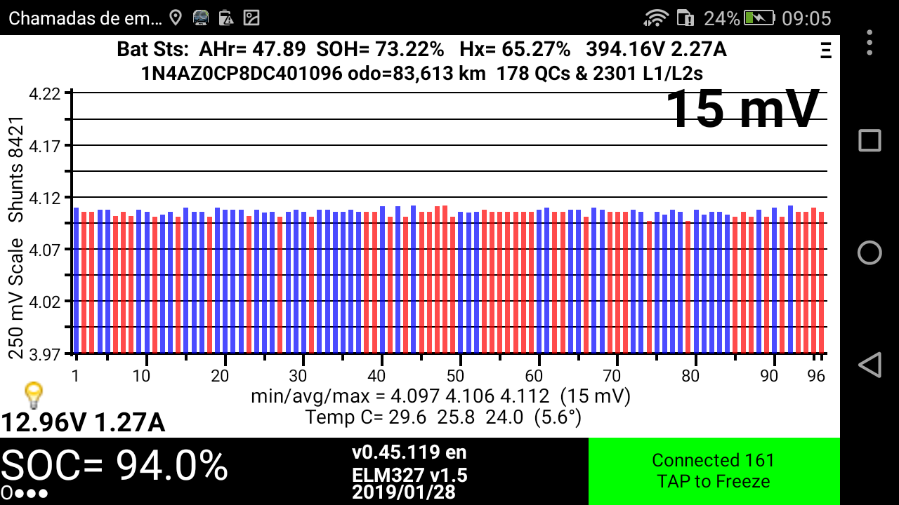 Já tenho quase uma degradação de 5% em termos de software, que, muito sinceramente, acho que as baterias têm hoje mais capacidade do que na altura da compra, basta o tempo aquecer mais um pouco e nota-se logo nas diferenças entre tensões para a mesma carga. Nunca medi isto mas é a ideia que fico, mas vamos esperar pelo verão para tirar as teimas.