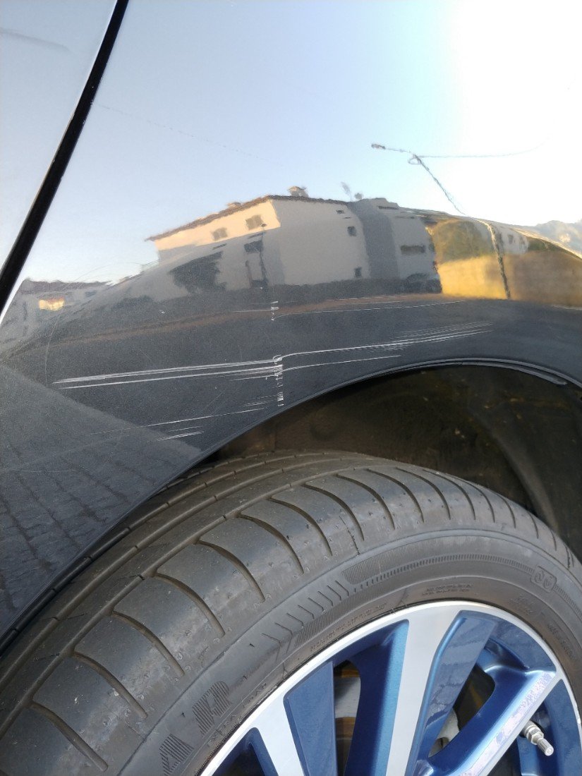 Estou em querer que se tivesse sensores traseiros poderia evitar este toque no guarda lamas traseiro esquerdo.