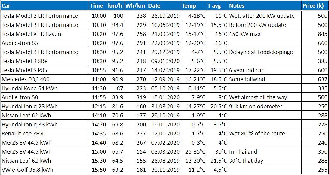 A tabela é esta: Portanto, o e-208 fica entre os "melhores dos mais baratos", sendo que os preços na Noruega dos Hyndai são estupidamente baixos! Por cá penso que o Kona por exemplo custa mais 10k€ que o e-208, portanto, por cá o e-208 é o mais barato dentro do grupo "até 12h"