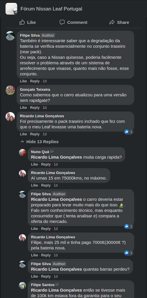 Não é o único a mencionar, "no site do demo", uma falha nos módulos traseiros da bateria.
