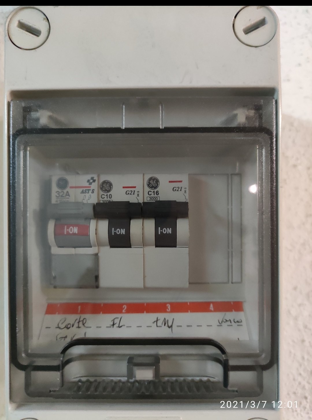 Anexo aqui a foto, o quadro está em casa(3° andar) e na garagem (-2,)o disjuntor de 32a. Onde está o interruptor e a tomada