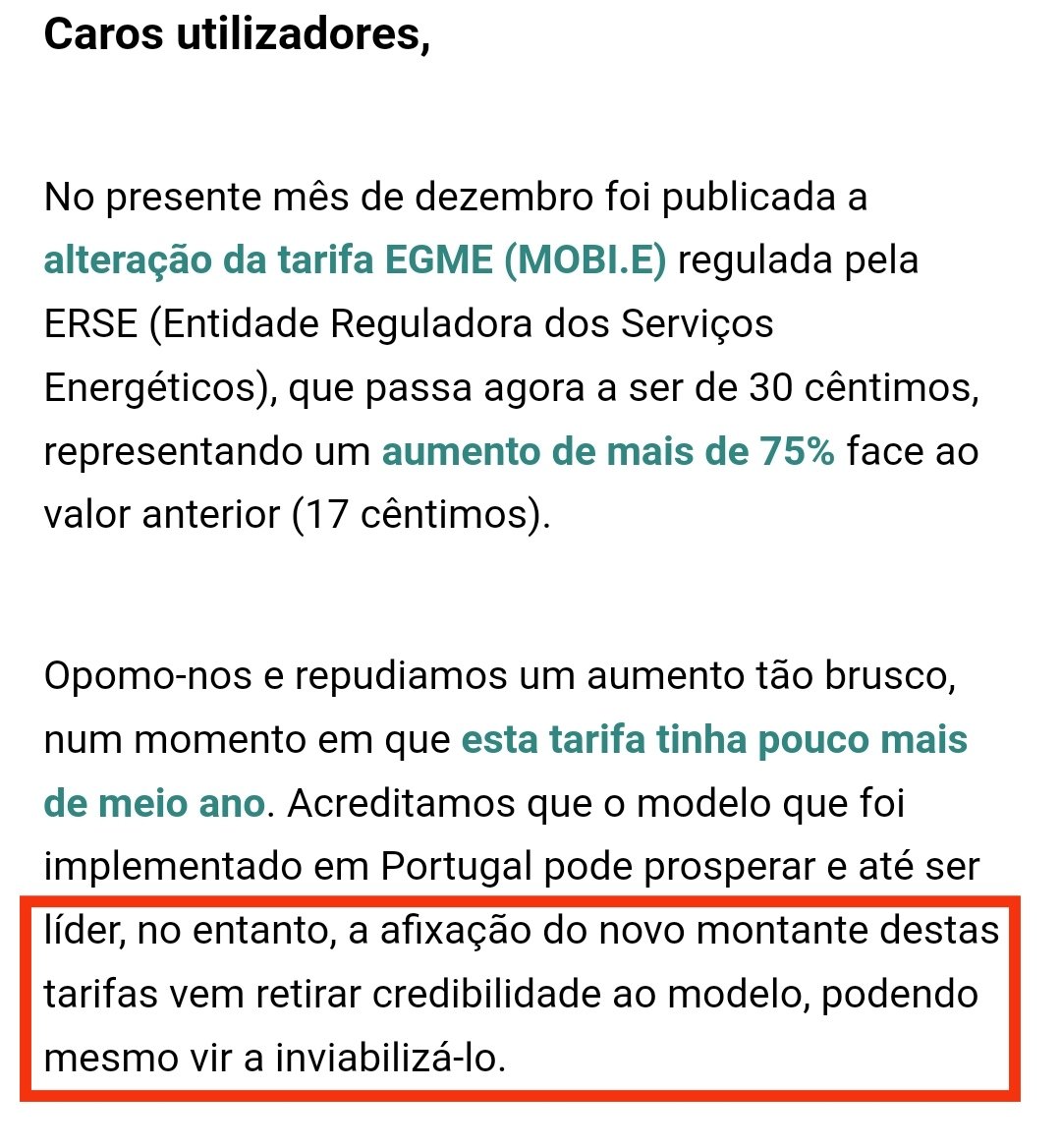 Este aumento brutal (quase duplicação) e inopinado (face ao aumento do número de sessões) é responsabilidade da ERSE, onde o próprio Conselho Tarifário teceu críticas a esse enorme aumento da tarifa EGME. Vou analisar melhor esse comentário do CT mas isto não beneficia ninguém, e a própria Mobi.e certamente percebe a enorme tempestade que isto vai (está a) levantar.