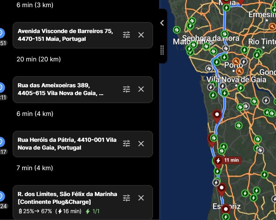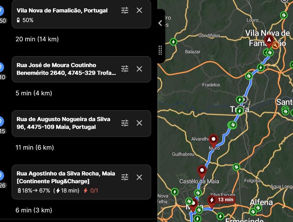 E claro, queremos saber como correu a viagem, eu diria que esse carro não faz mais de 20km seguidos e não carrega a mais de 10kW num PCR, portanto podes ir fazendo o plano.