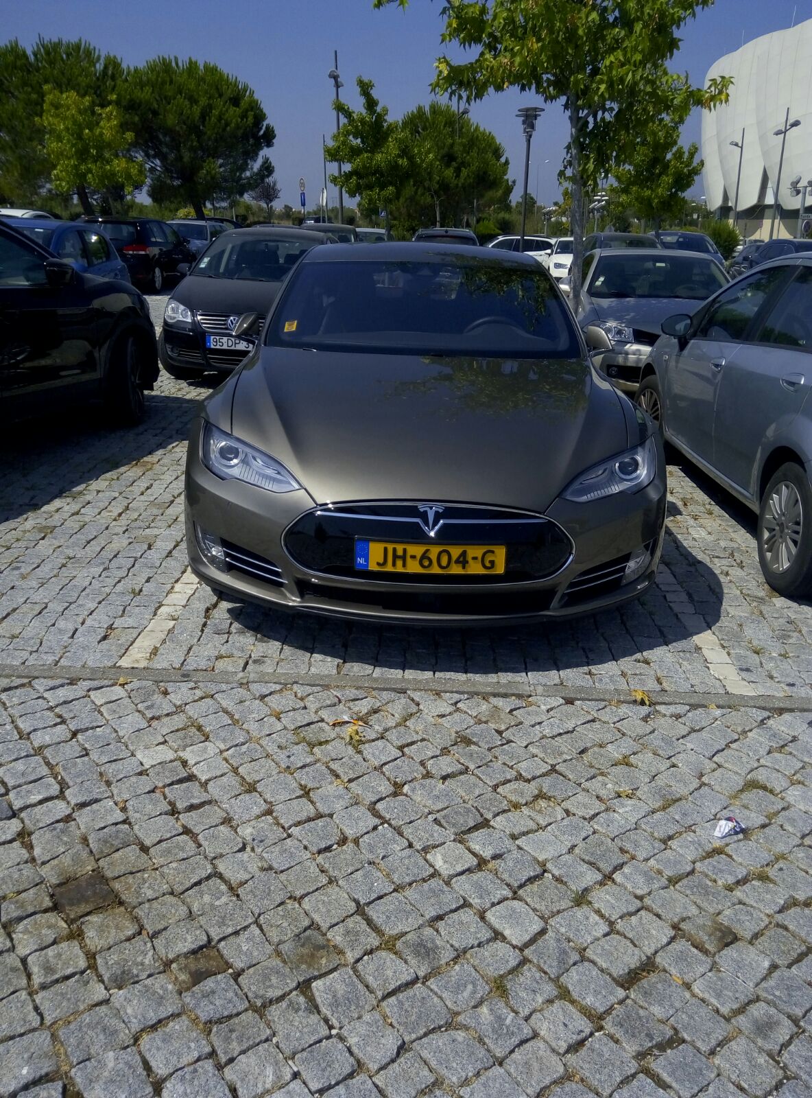 Acabei de ver um Tesla no PCR de Pombal S/N. Matrícula RQ, ainda deve ter goma nos pneus
