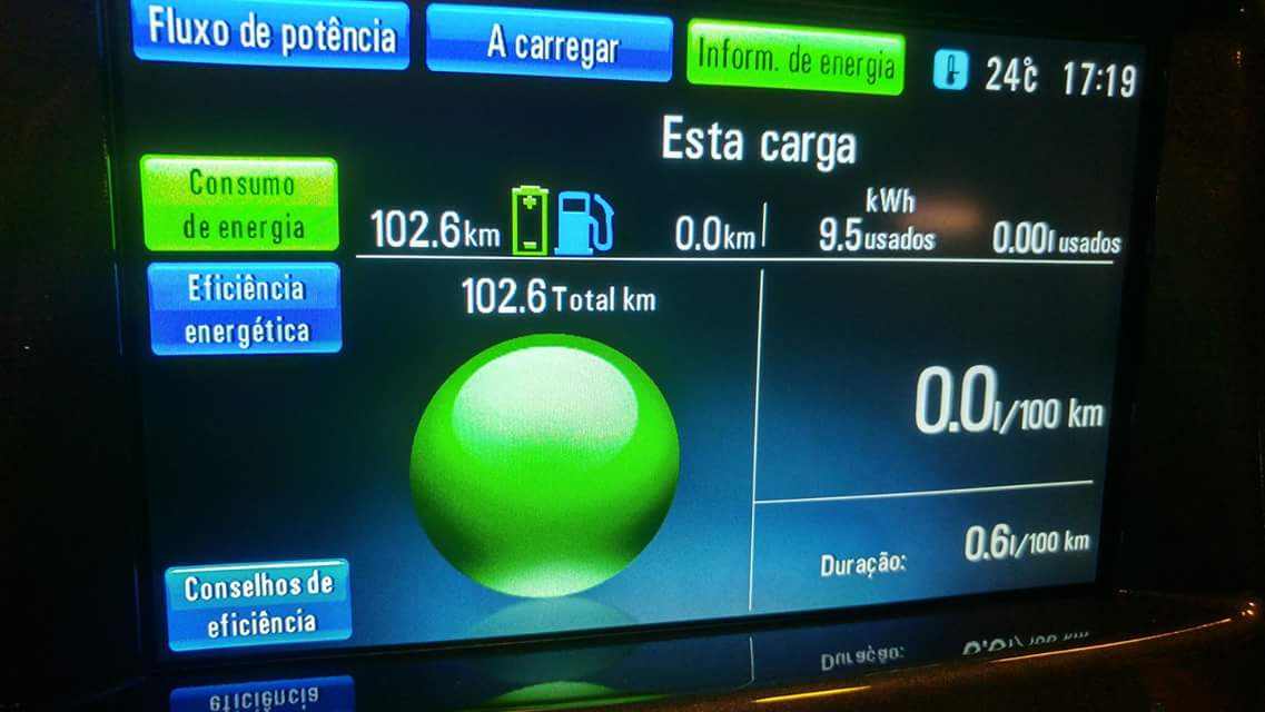Muito bom. Dá uma média de 35g CO2/km da gasolina. Qual é a média de kW.h por 100km?