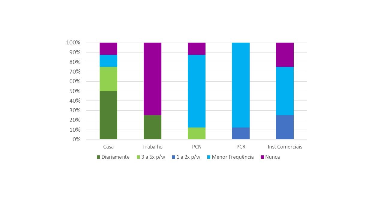 Segundo os resultados, a maioria opta mesmo por carregar em casa e quase ninguém utiliza os PCR (talvez por serem poucos ou estarem a ser usados por TVDE). Curioso também ver o resultado dos que carregam no trabalho. Parece-me que algo deveria ser feito junto das empresas para criar condições para o efeito.