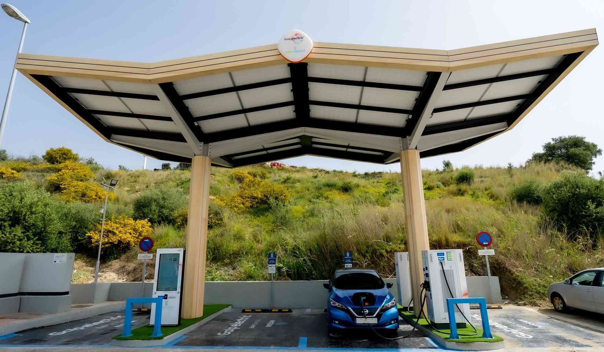 La Estación de Carga de Estepona es para EasyCharger una de las aperturas más especiales y es que es la primera Estación de Carga Fotovoltaica y ultrarrápida de España. Los cargadores están alimentados por energía 100% renovable gracias a los paneles solares de la pérgola que cubre las plazas de carga.
