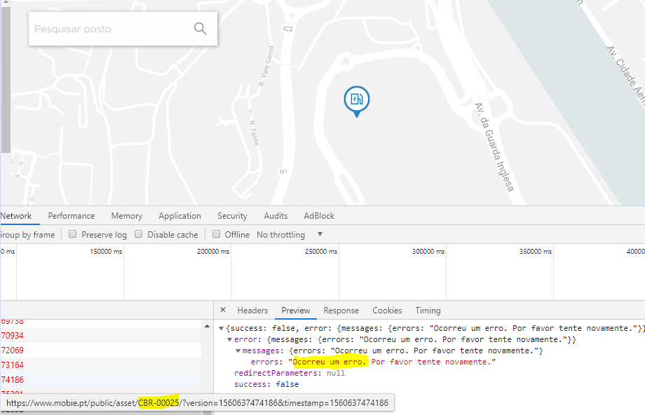 Embora o site esteja a esconder o erro, o problema aparenta estar na interface "pública" de obtenção da informação dos postos do webserver do CEiiA, estando a rede funcional.