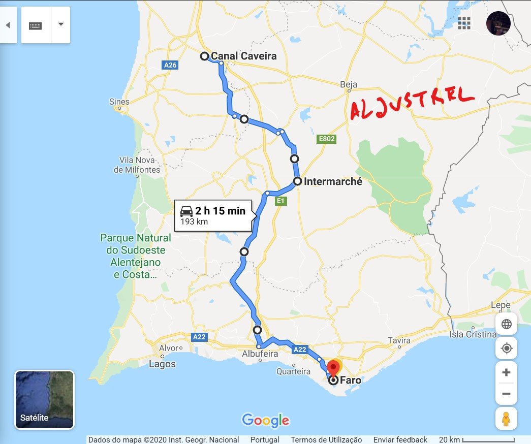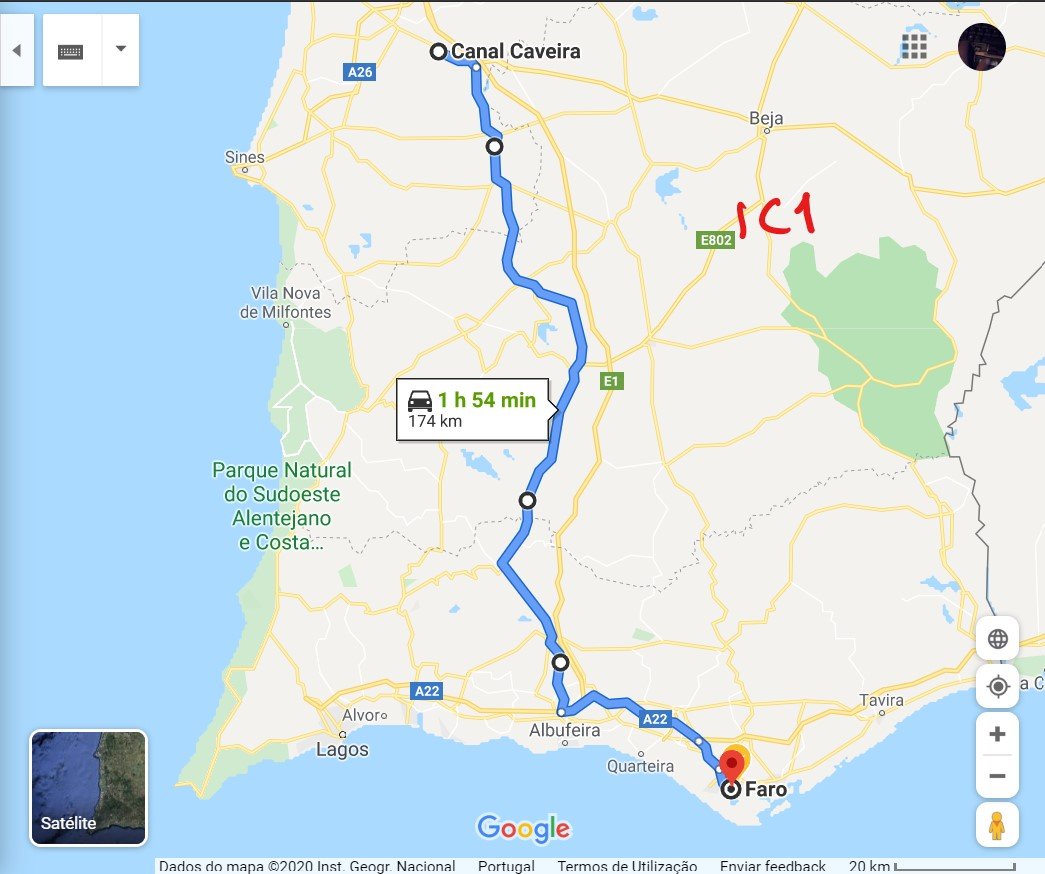 É verdade, a N2 lá bem no fundo é muito má para os passageiros, eu fui da opção "parva" e para cima acho que vou fazer Ourique, Castro verde, Aljustrel e depois apanhar de novo a IC1, tendo que entrar na A2 para apanhar Alcacer.