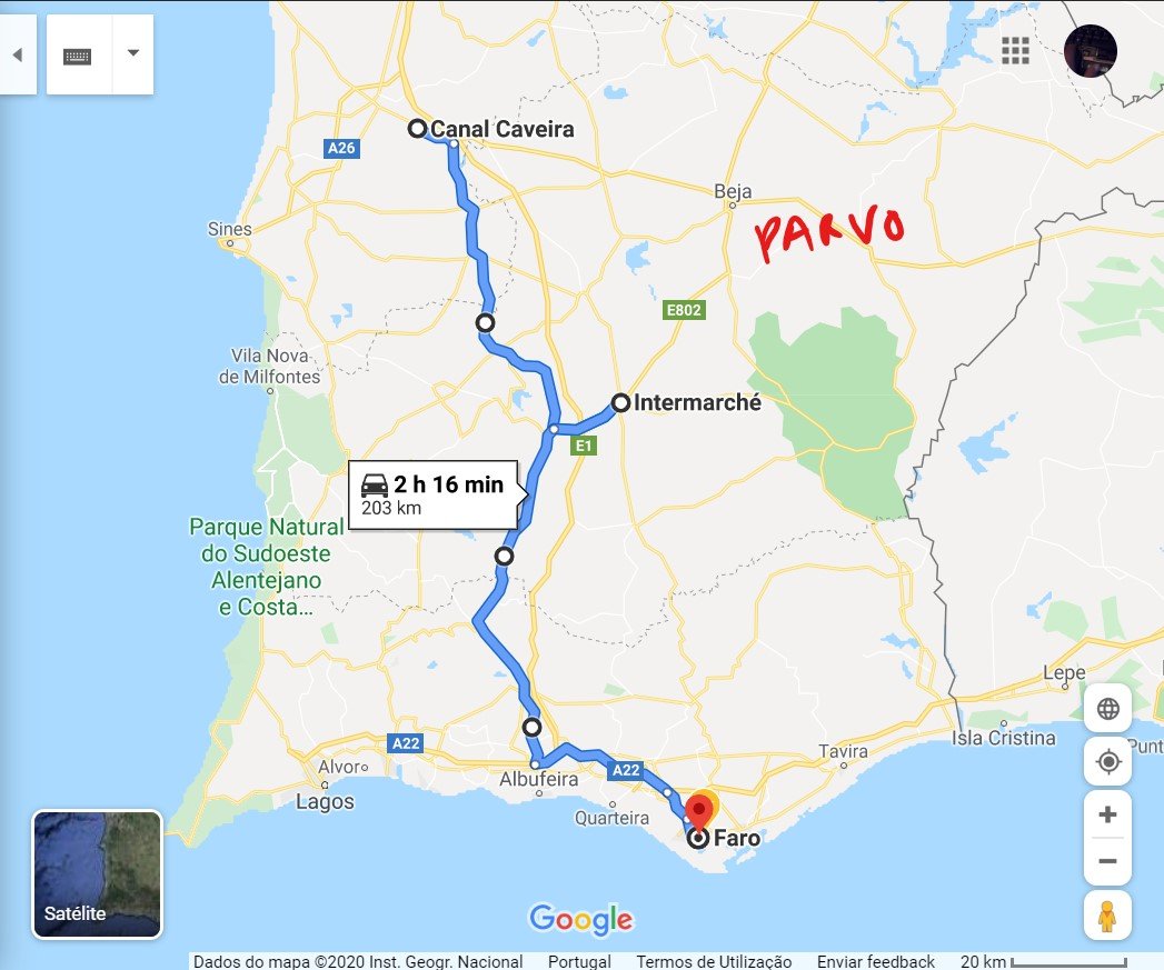 Também me parece que o parvo é o mais rápido, porque são estradas largas, embora o piso do IP8 esteja muito estragado.