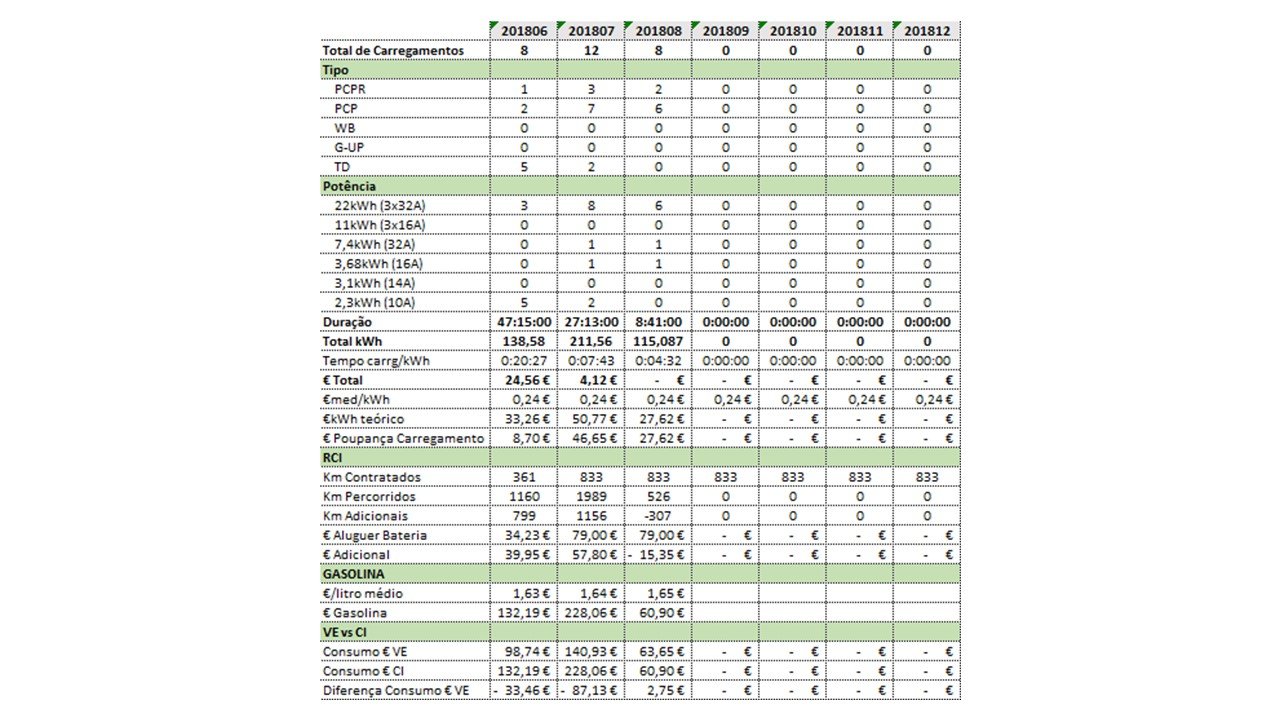 Nota: Considero o contrato de aluguer como consumo, inclusive os km adicionais para além do contratado (média mensal)