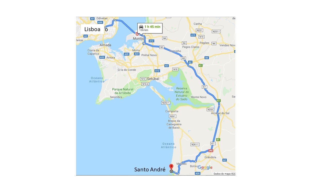 O trajecto consistiu na ligação de Lisboa a Santo André (que faço que alguma frequência), evitando portagens: