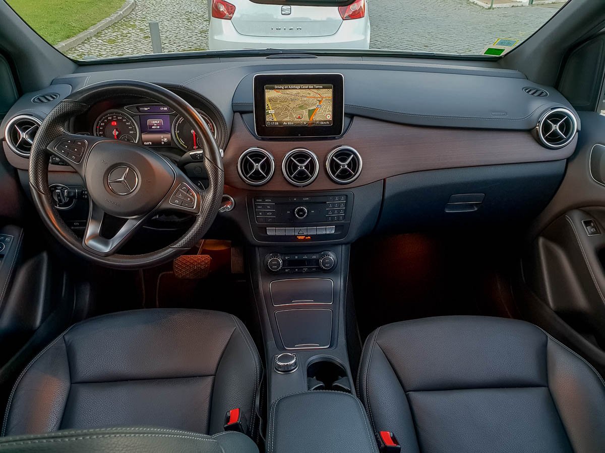 Tem câmara de marcha-atrás, sensores de estacionamento à frente e atrás. Estaciona sozinho em paralelo.