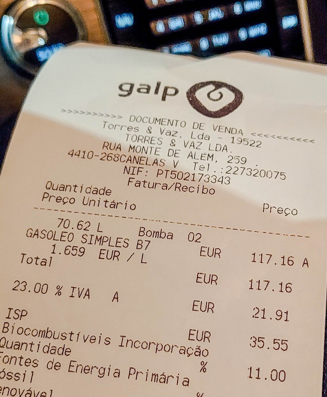 Entretanto e como comparação de custos / memória futura, tive ontem de me deslocar sem aviso até Vila Nova de Gaia, tendo atestado por completo a primeira vez o depósito na carrinha desde... Agosto (!!!)