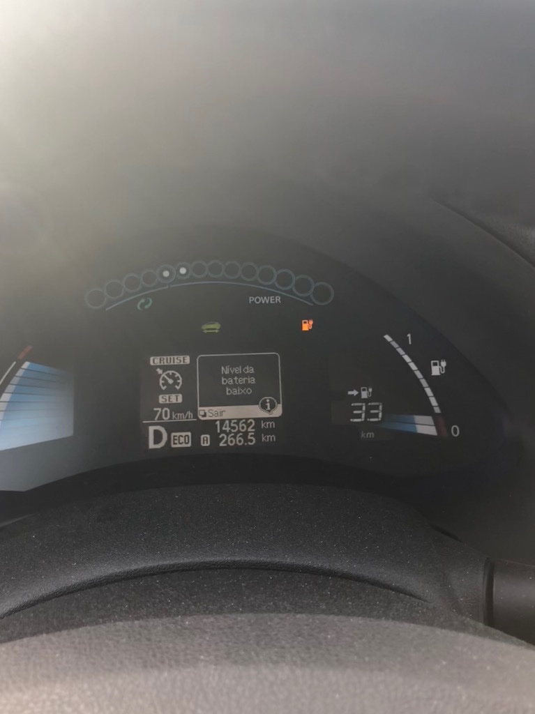 Estávamos a meio da Vasco da Gama quando apareceu o sinal de “Nível da bateria baixo”, com 33 Kms e 18 por fazer…