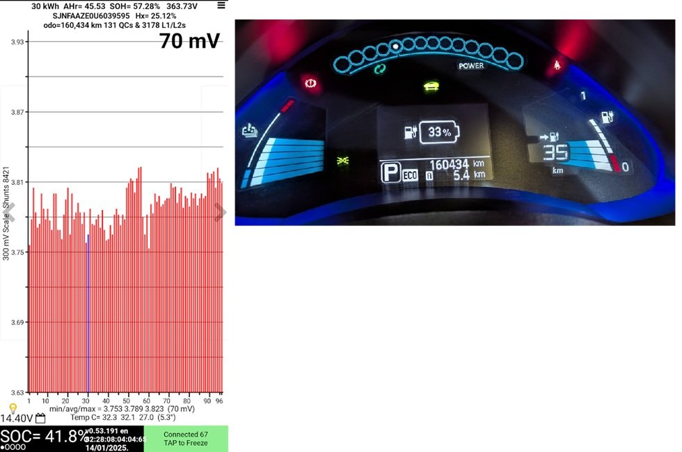 11/2023 - 140.000km (9 Barras-67.86% SOH) --- 02/2024 - 144.757km (8 Barras-65.83% SOH)