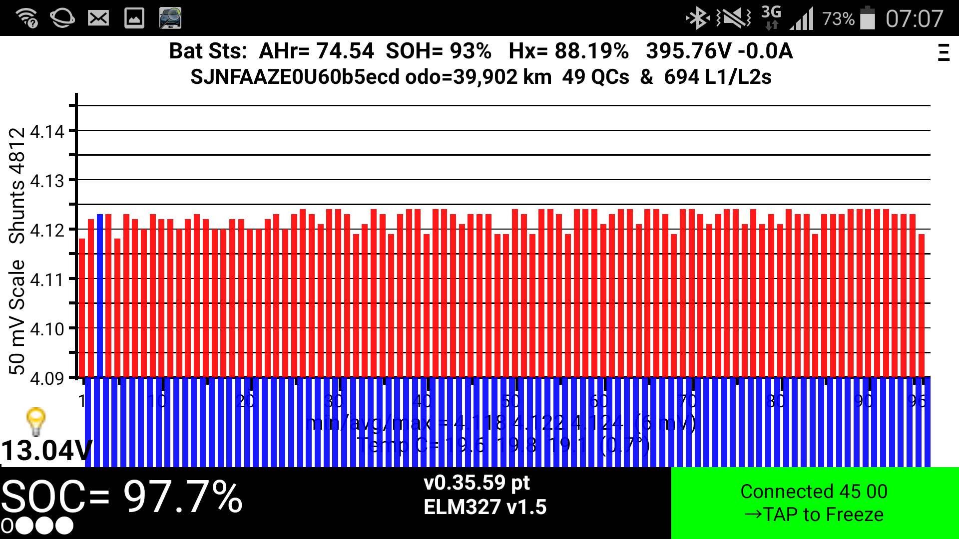 Quero acreditar que os valores apresentados pelo leafspy para SOH e Ahr não representam o real estado da bateria pois continuo a fazer o mesmo trajeto diariamente e o valor que obtenho no GOM continua a ser praticamente o mesmo que tinha no inicio.