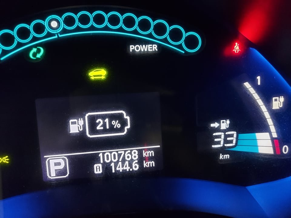 Após chegar a casa com estes 21% tive que ir e vir a Lisboa (carregou 6% na pausa entre saídas), e entre abastecer o diesel que está na reserva ou ir até um PCR para regressar optei pela última opção.