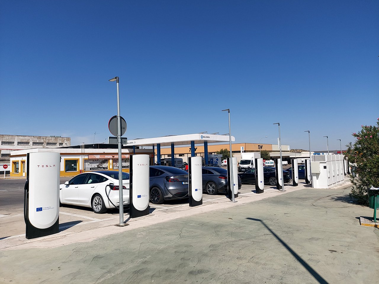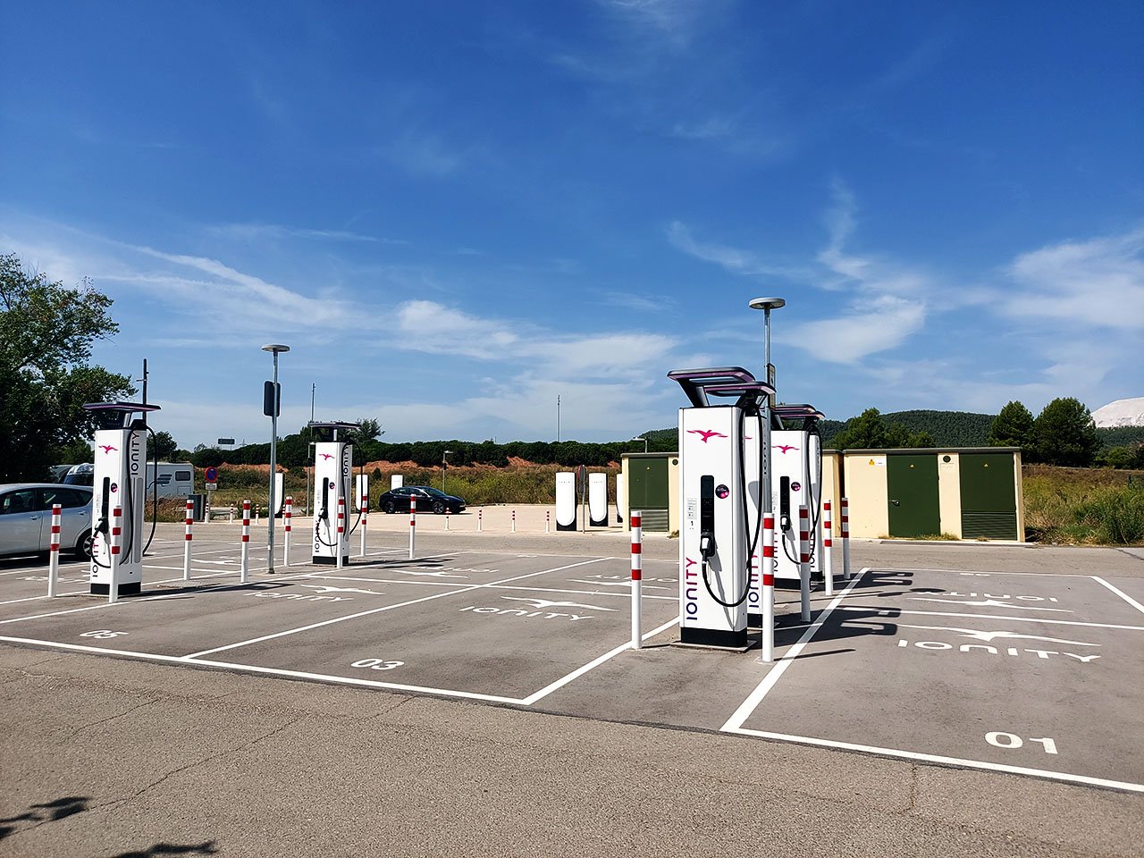 Tesla e Ionity, e curiosamente, ambas com espaço preparado para duplicar os postos assim que necessário.