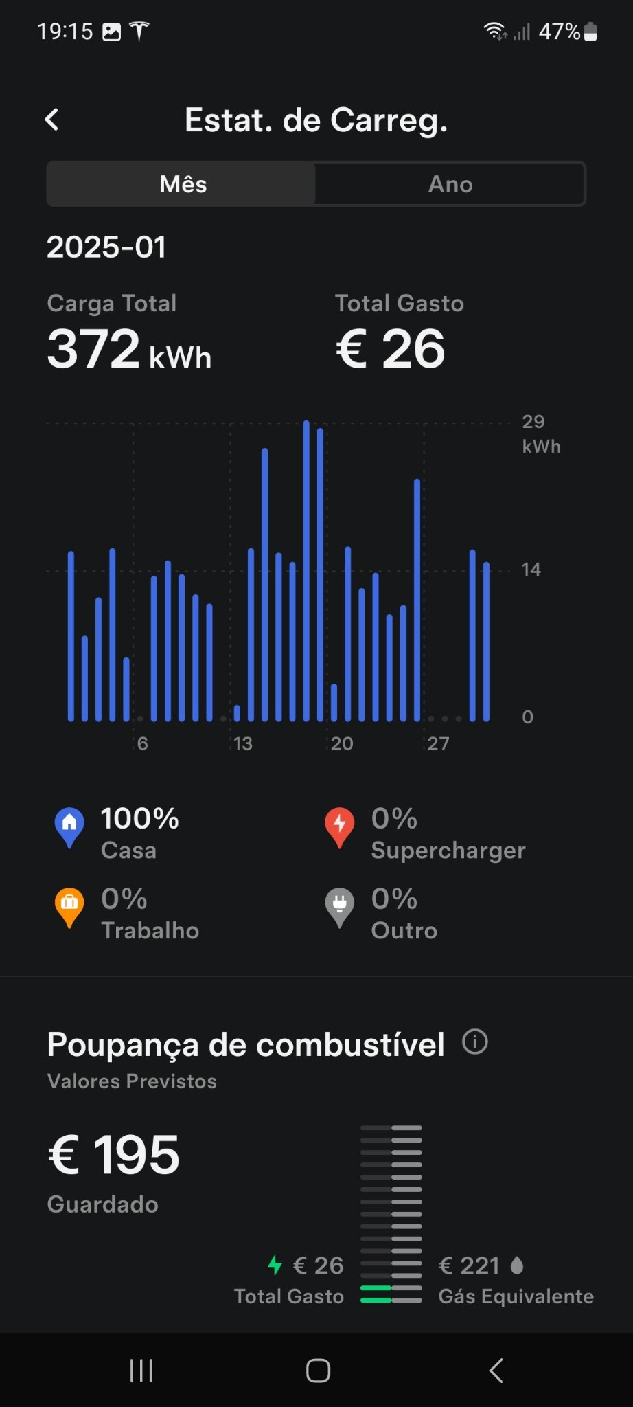 São contas por alto, mas aqueles 372kWh também não correspondem aos kWh/100 que o carro indica nos consumos: