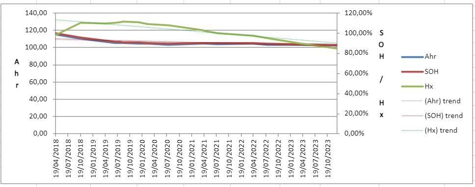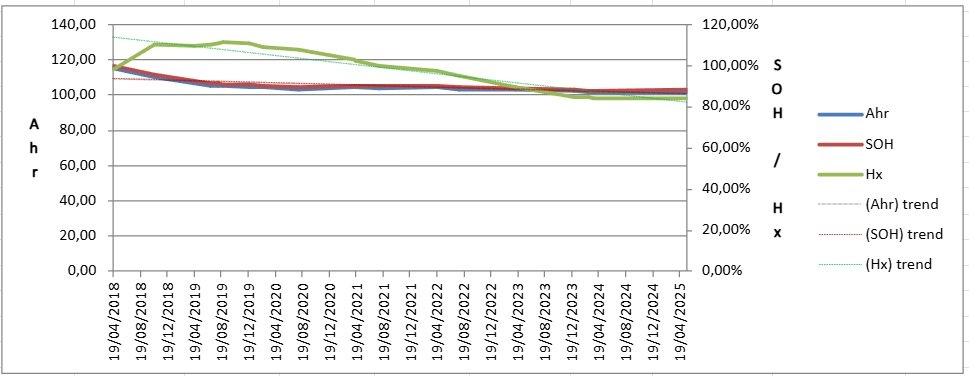 SOH = 88,46% (11,54% em 5 anos e 8 meses... ~2,03%/ano)