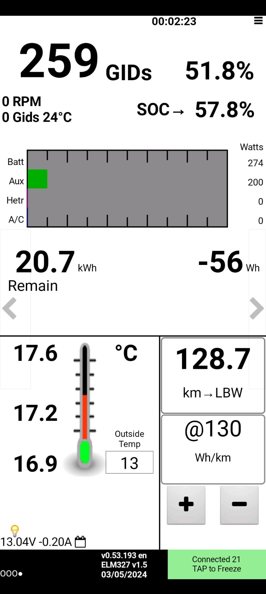 Bem gerido ainda só teria carregado em Badajoz como da última viagem, mas nesta viagem, o tempo está mais frio (ar condicionado ligado na volta, havia previsão de chuva - que não ocorreu, e voltas previstas e imprevistas em Elvas, levou a necesidade de uma cargas rápidas)