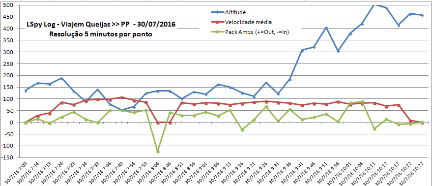 Aqui vai - o Leaf Spy fez LOG de 5 em 5 minutos. Até para mim que fiz a viajem a subida da altitude até aos 500 metros foi uma surpresa - não pareceu tão a subir...