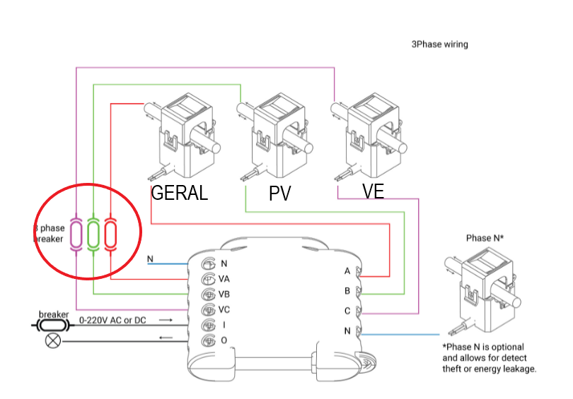 O esquema que coloquei foi com base no esquema de geral + PV e adicionei o VE, dai eu dizer que não percebo como ligo o VA/B/C.
