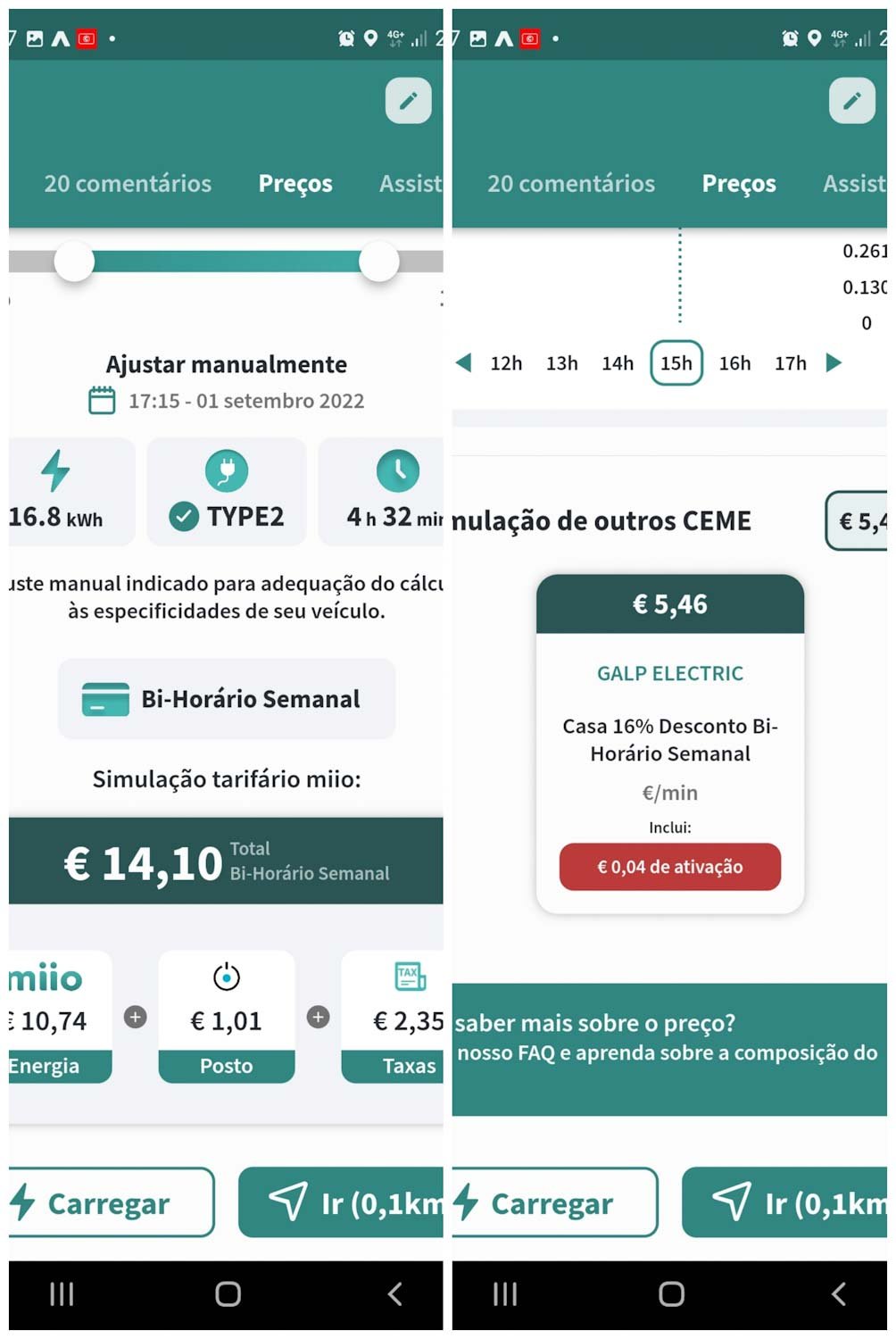 É preciso ter em atenção algumas coisas. Primeiro o nosso modelo em relação aos preços é complicado porque existe um CEME, um OPC e uma EGME, depois existe facturação ao kWh e ao minuto, ainda existe o carro que temos e, ainda existe o posto de carregamento que se tiver algum problema e não entregar a potência anunciada provoca logo alterações no valor final. São N variáveis que influenciam o valor final a pagar.