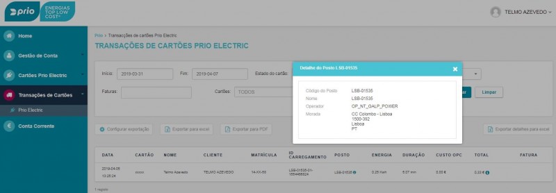 Quem usar o cartão Prio por exemplo, pode ver logo o consumo (e custo) do carregamento em PCN no portal MyPrio.