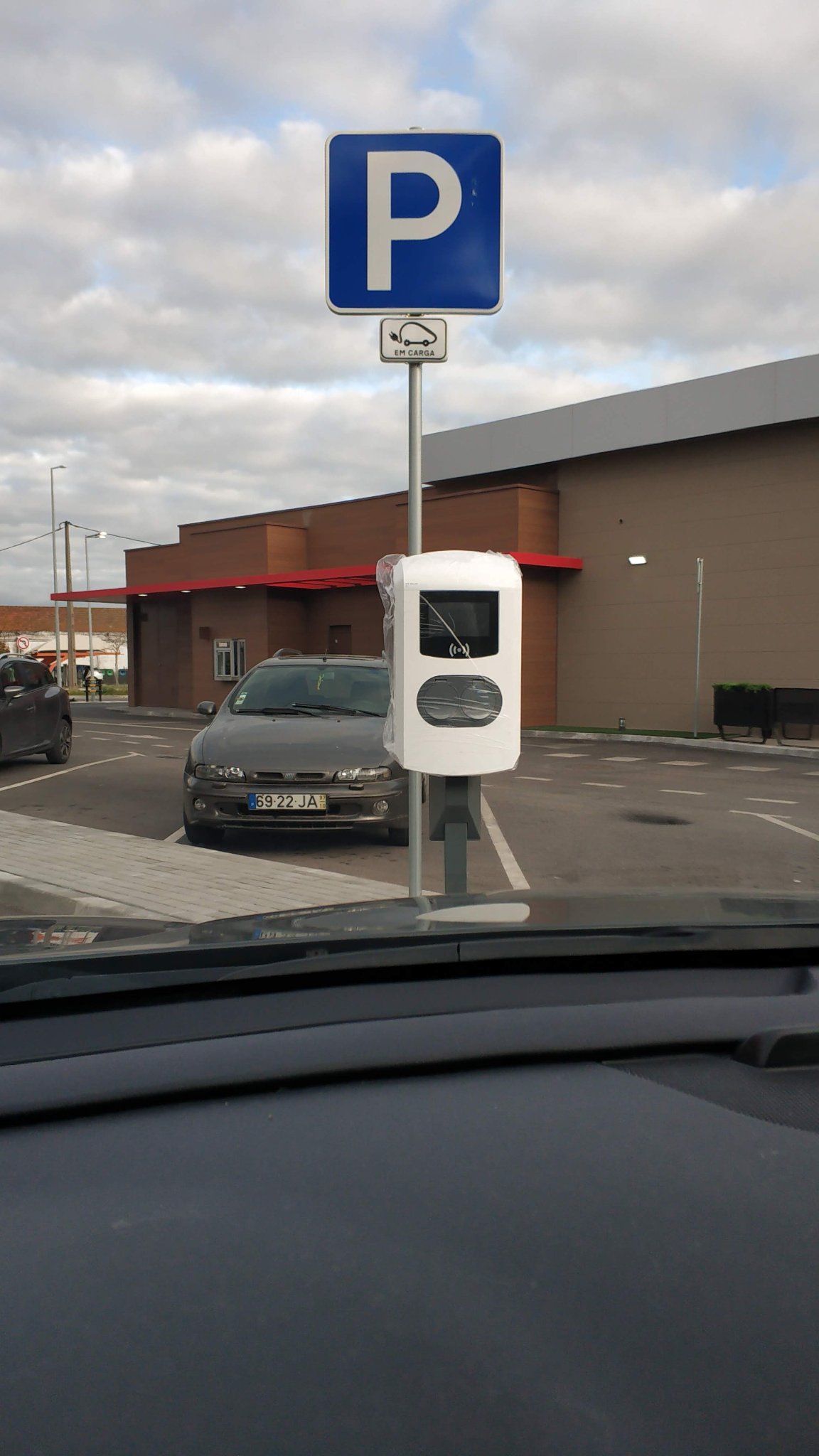 Os lugares, sinalização vertical e quadro já lá estão há muito tempo, bem antes de sequer começar as obras do Lidl. Entretanto construíram um Lidl, com PCR e tudo e só agora apareceu este PCN ainda embrulhado e desligado. Ao lado não sei se será um PCR.