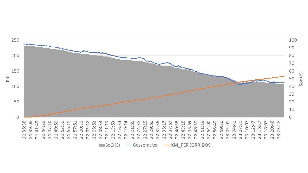 O consumo médio foi de 13,9 kWh/100km, e a velocidade média 72,1 km/h, tendo sido consumidos 18kWh.