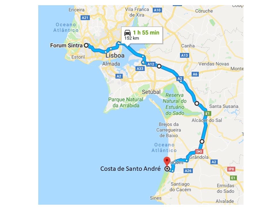 Destino Costa de Santo André com rota a evitar portagens: