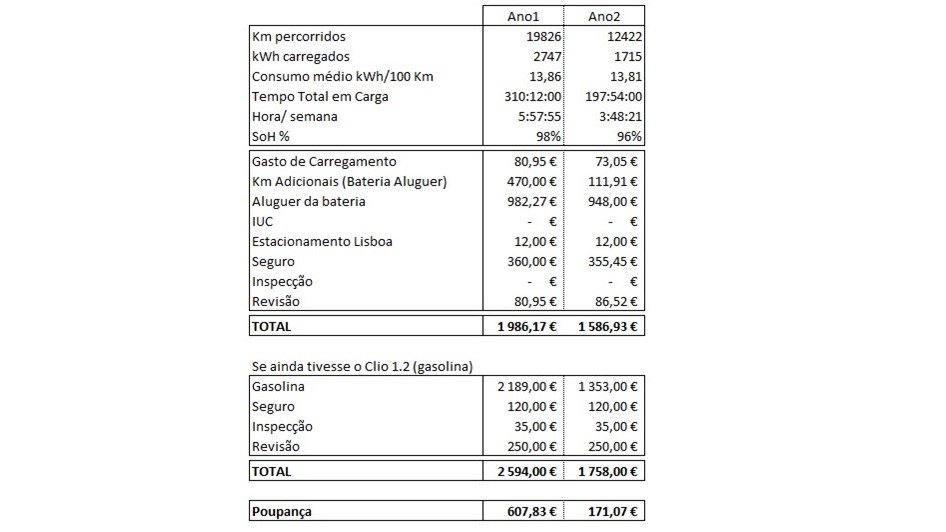 Comparação ZOE (2018) vs CLIO 1.2 gasolina (2006):