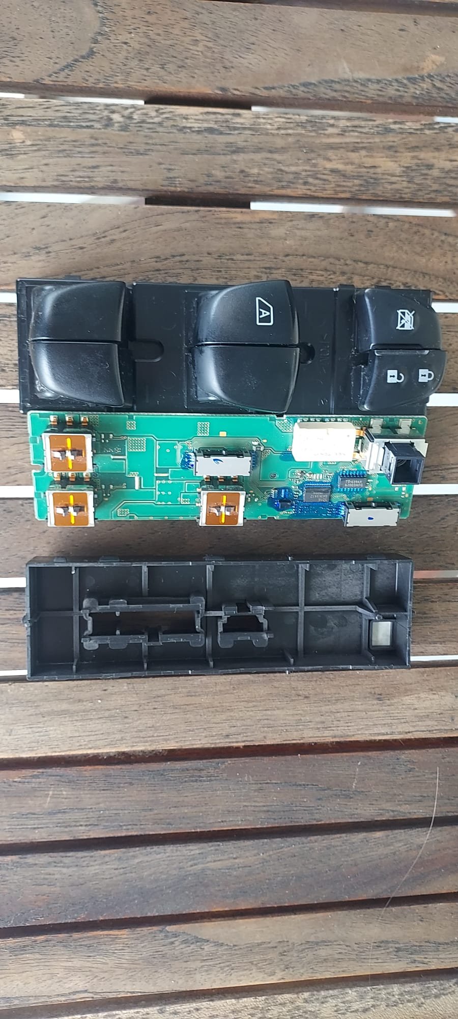 Após abrir a caixa de comando reparei que o interruptor do vidro do condutor é do tipo reóstato e diferente dos outros 3 vidros.