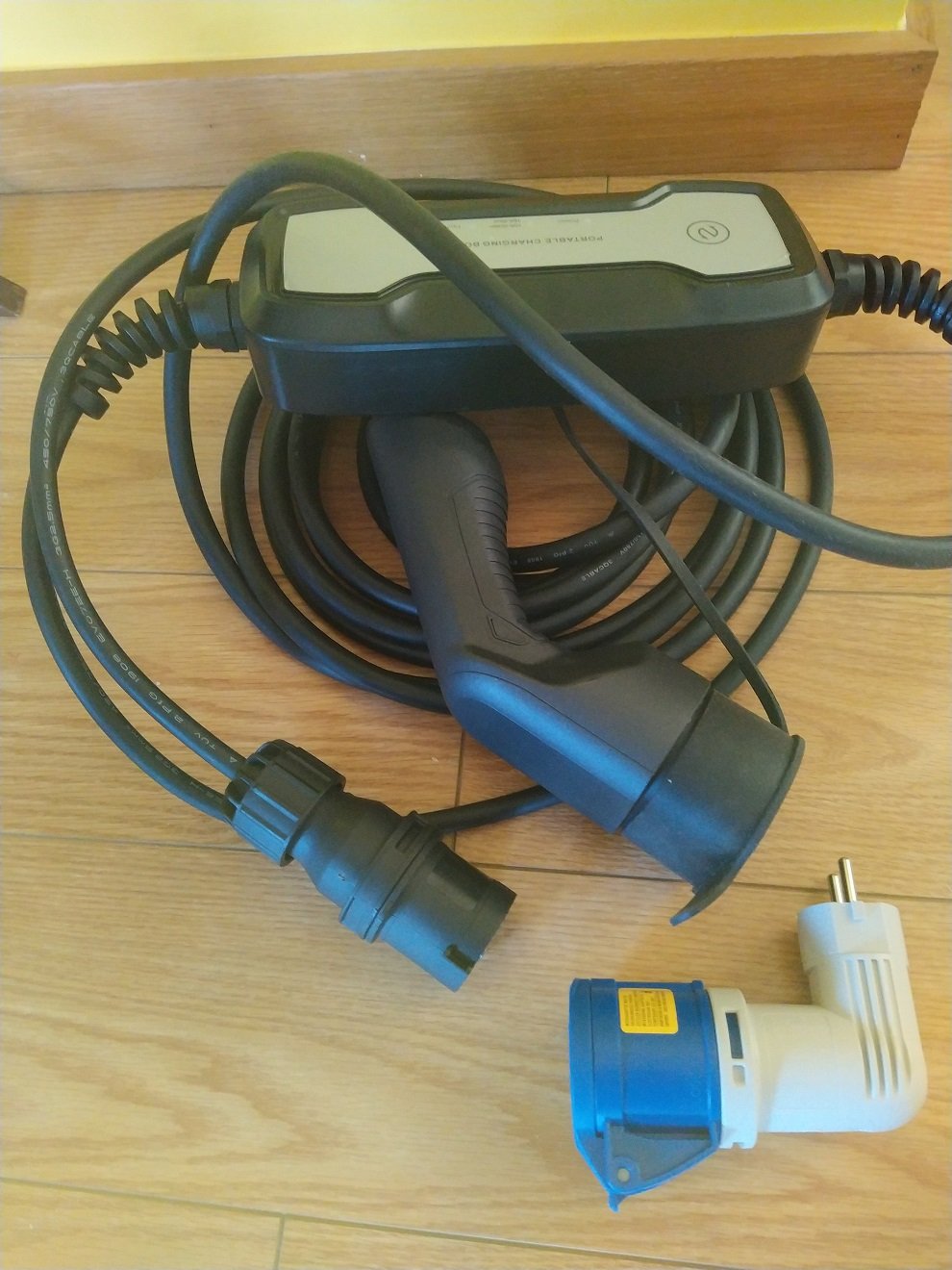 Cabo para carregar o seu carro elétrico com tomada mennekes (tipo2) em qualquer tomada CEE ou com uma adaptador numa doméstica Schucko (as tomadas vulgares de casa).