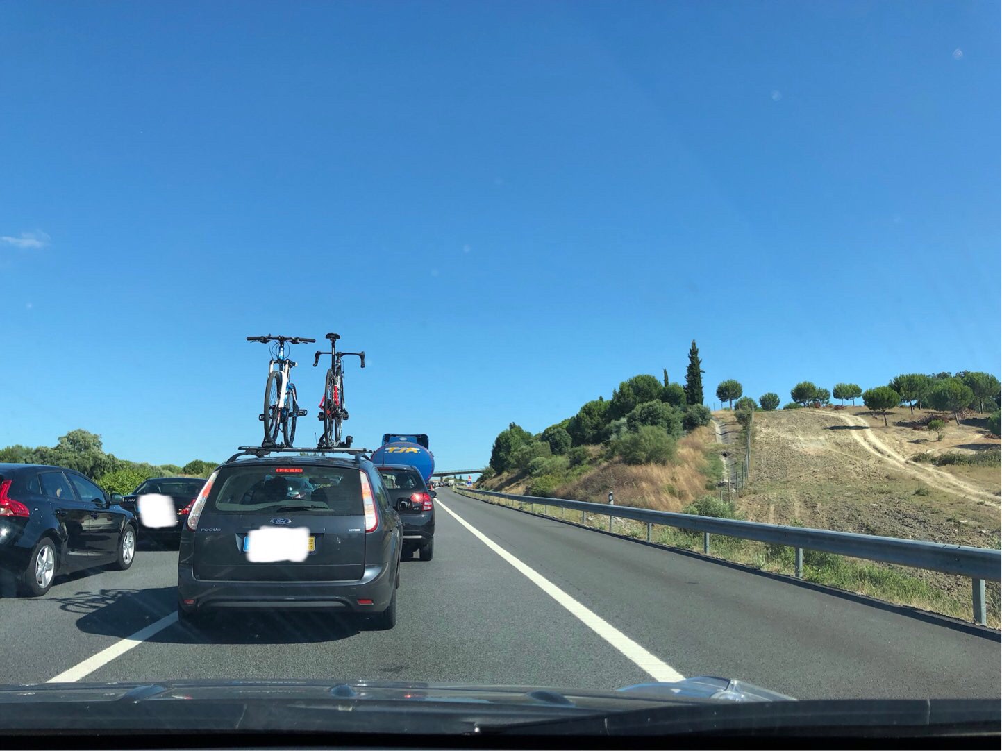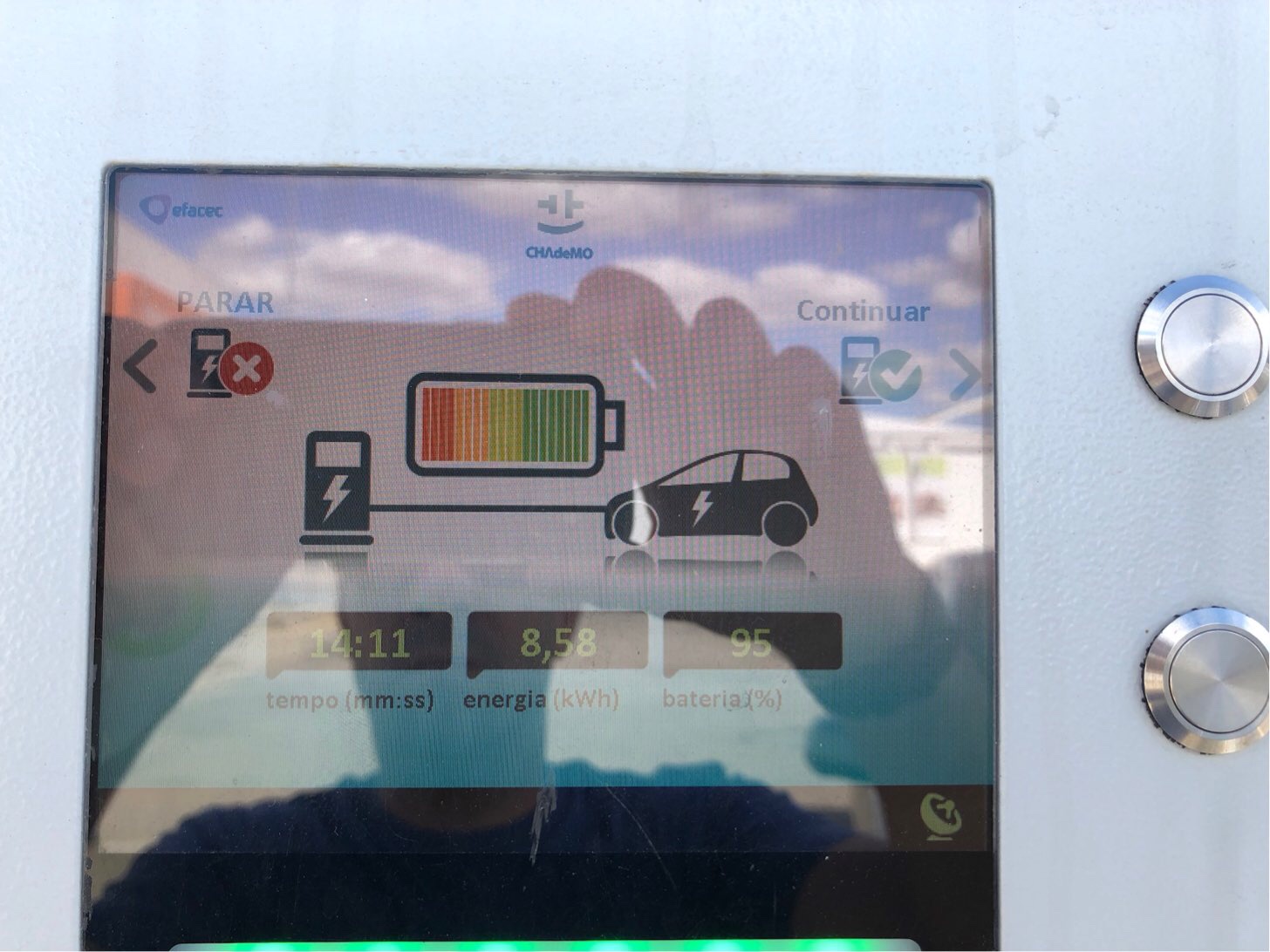 Primeira foto com quase tudo, para se ter noção do que se consegue encaixar... Segunda foto agora mesmo com tudo, não foi preciso deixar nada em terra... Saída da zona do Campo Grande, perto das 16h, Trip A a zero, carregado a 100% Seguimos pela 2ª circular e Vasco da Gama, seguimos os conselhos, fomos sempre à volta dos 100kms/h, e na chegada a Alcacér uma hora depois, com 65% Continua na segunda parte - ou não se consegue, ou eu não sei como carregar mais fotos num só post...