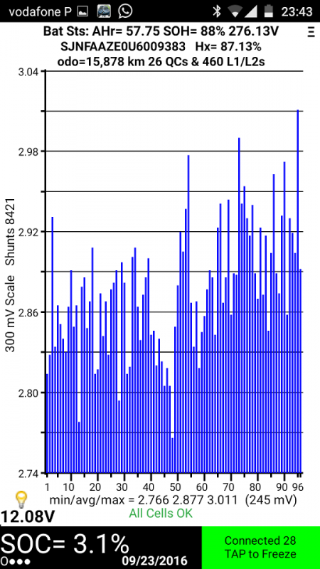 275mV entre a célula mais fraca e a mais forte a esse SOC é muito bom, e quase irrelevante a nível de capacidade perdida por desequilíbrio. Falta o resultado mais importante, os kW.h da tomada ;)