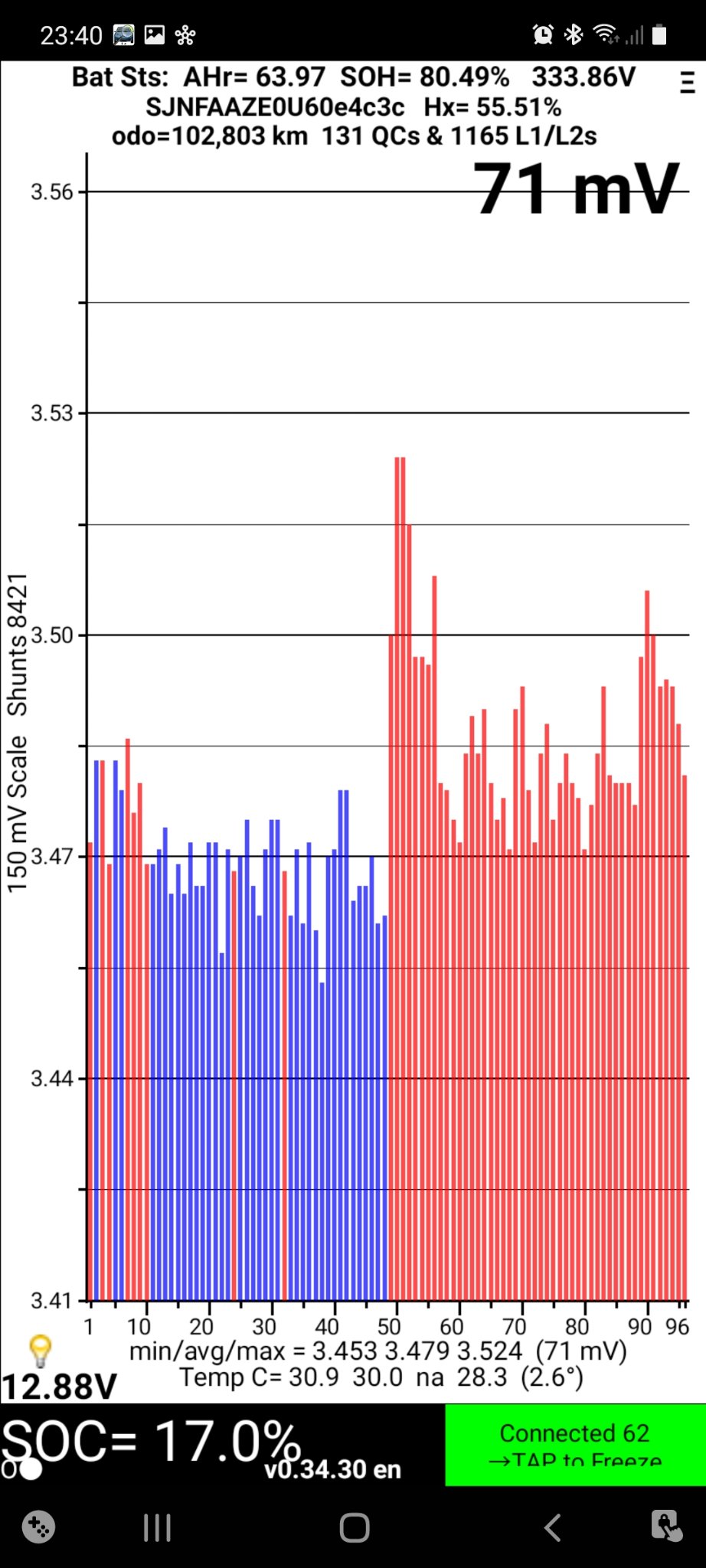 Tristeza, porque voltei a ter um leitor para o Leafspy e constatei o óbvio: O SOH desceu.