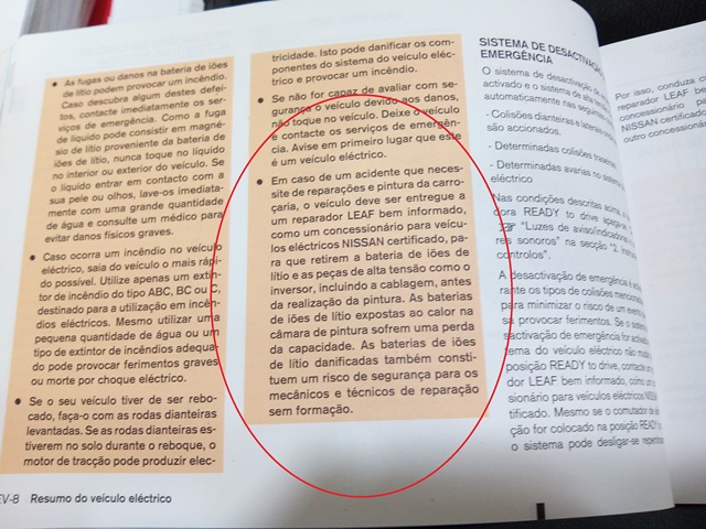 Como me andavam a dizer lá na Nissan que não haveria qualquer problema em levar o carro à estufa, interpelei-os com esta página do manual do utilizador, pedindo para reconsiderarem o que me andavam a dizer e investigarem a questão como devia ser.