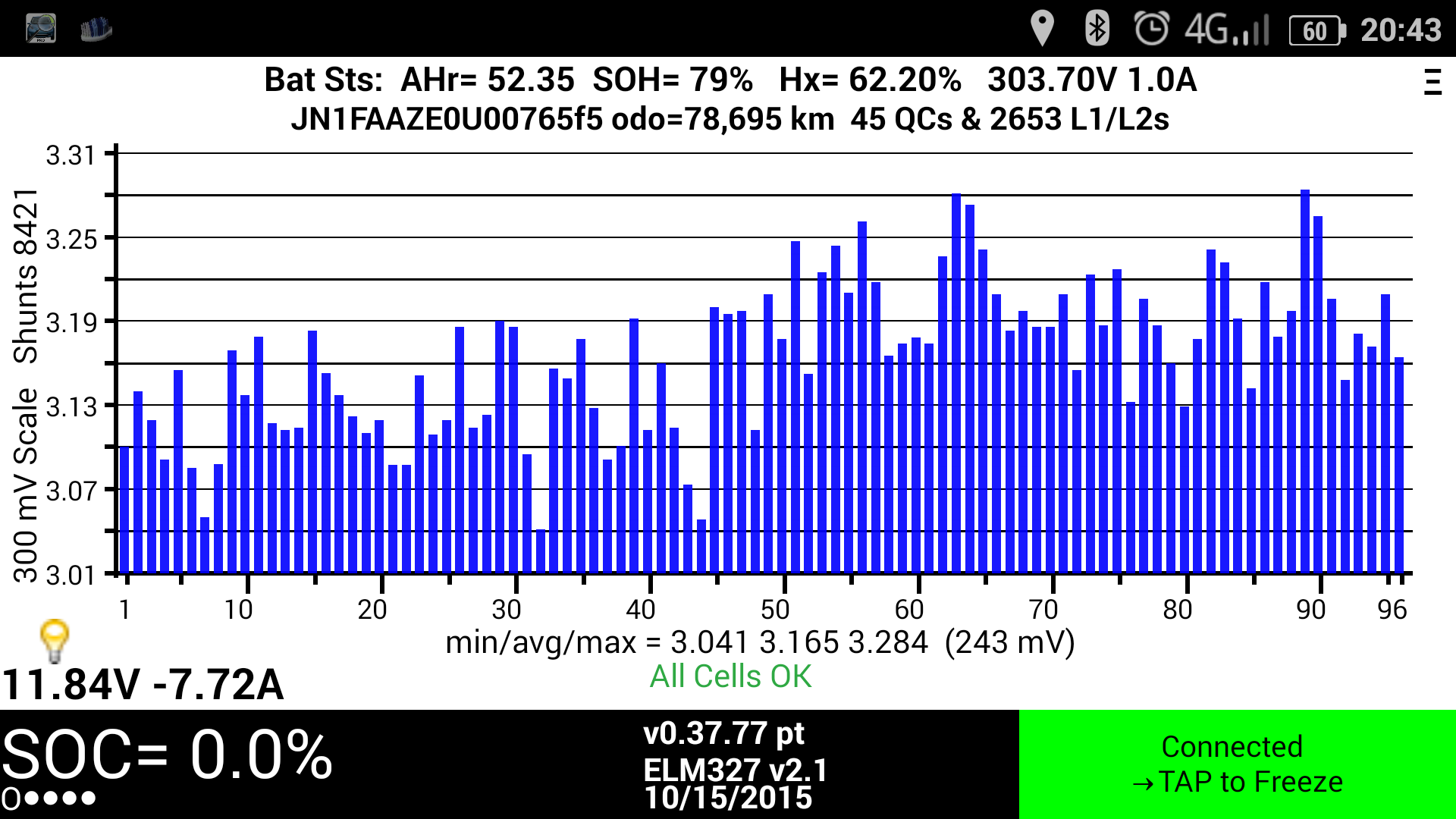 Ainda com as barras todas? A temperatura faz a diferença! Por esse andar vais conseguir fazer 400mil com o pack original!