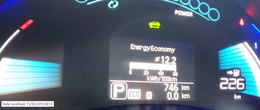 Voltando à base quando saímos do Stand (ainda a experimentar pedais) o LEAF apresentou 199Km carregado (a 100% segundo o vendedor)!...
