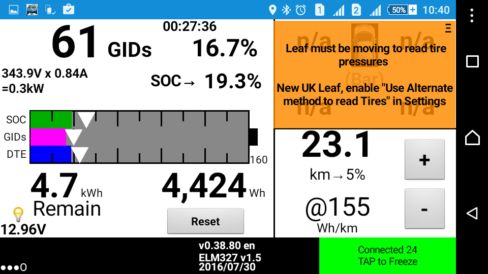 Um dos primeiros screens com o LeafSpy já é conhecido mas deixo-o aqui para referência.