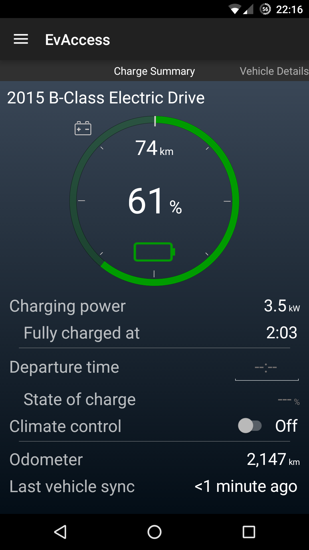 O sistema funciona assim: quando se sai do carro ele actualiza o estado, localização, etc e não actualiza mais. Se estiver a carregar, ele actualiza todos os minutos.